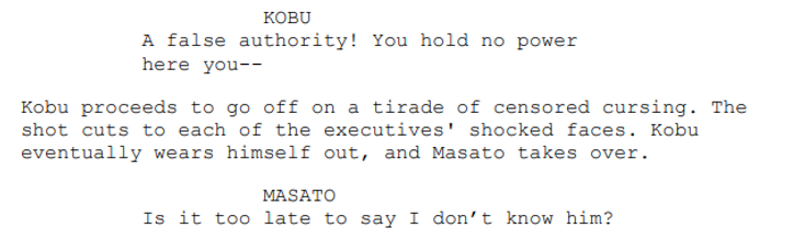 A cinematic script for a conceptual comedic action game involving a hapless delivery driver possessed by an ancient Oni warlord.