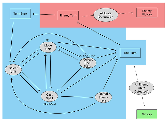 Designed core gameplay loop centered around spells with elemental typing.