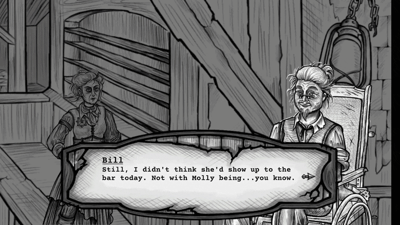The Maddening Mercy is a part visual-novel, part bullet-hell detective game. Step into the shoes of Mercy Allison, a marshal for the peacekeeping Long Arm Gang, as she investigates a murder in the small town of Toothwood. Gather clues and talk to characters in visual-novel Investigations, before using those clues to break through suspects' arguments in bullet-hell Confrontation action segments.